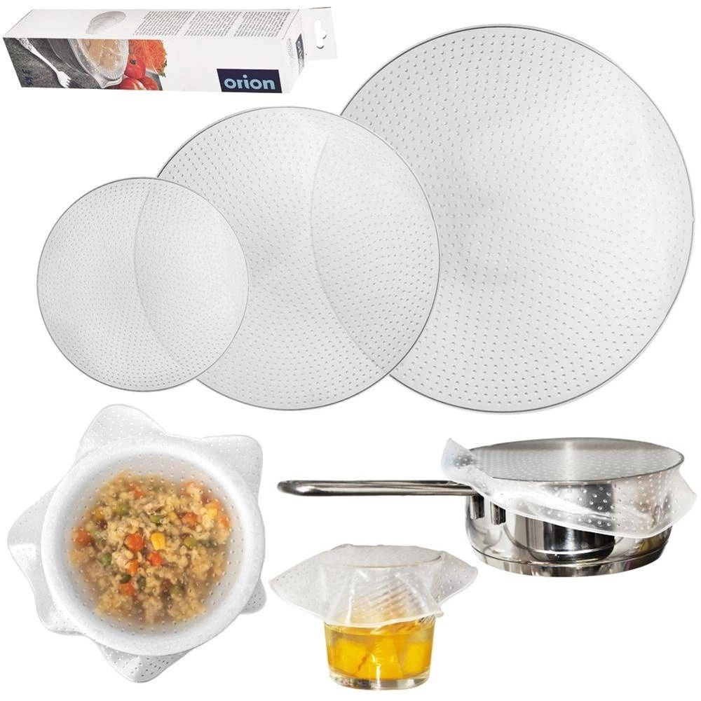 Mantén la comida fresca por más tiempo y la cocina sin desorden. Las tapas de silicona en tres diámetros populares 15/20/26 cm se adaptan con flexibilidad a distintos bordes de recipientes y crean una cobertura fiable. Gracias a su fina perforación/estructuras y a su elasticidad, dejan salir el vapor fácilmente y al mismo tiempo reducen las salpicaduras y la fuga de aromas.