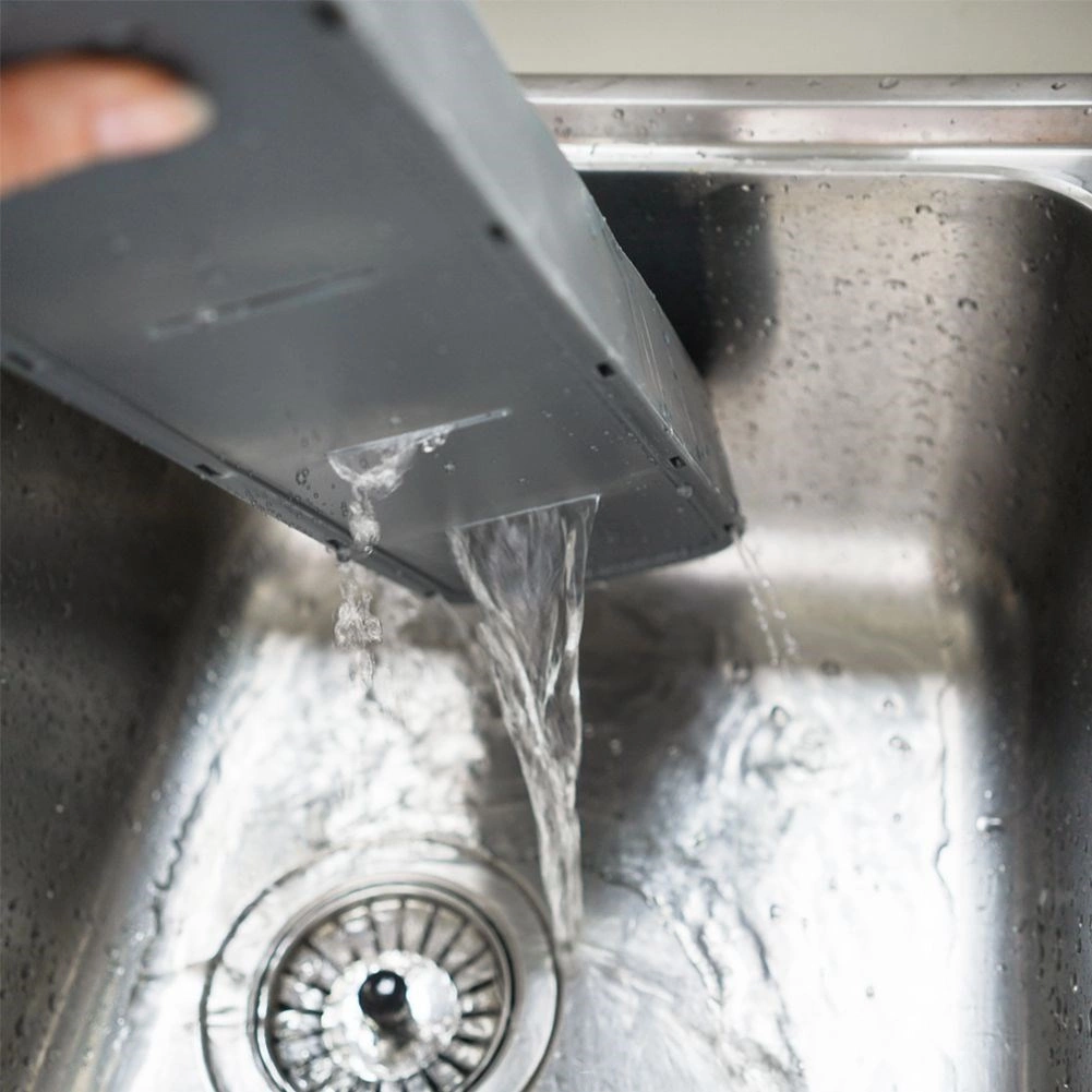 Su forma estilizada y la estabilidad antideslizante permiten usarlo dentro del cajón o como organizador sobre la encimera.