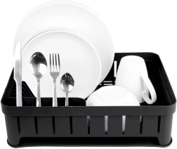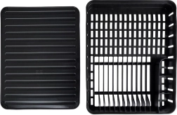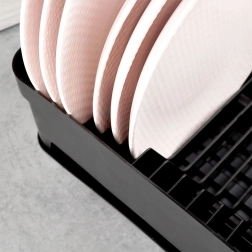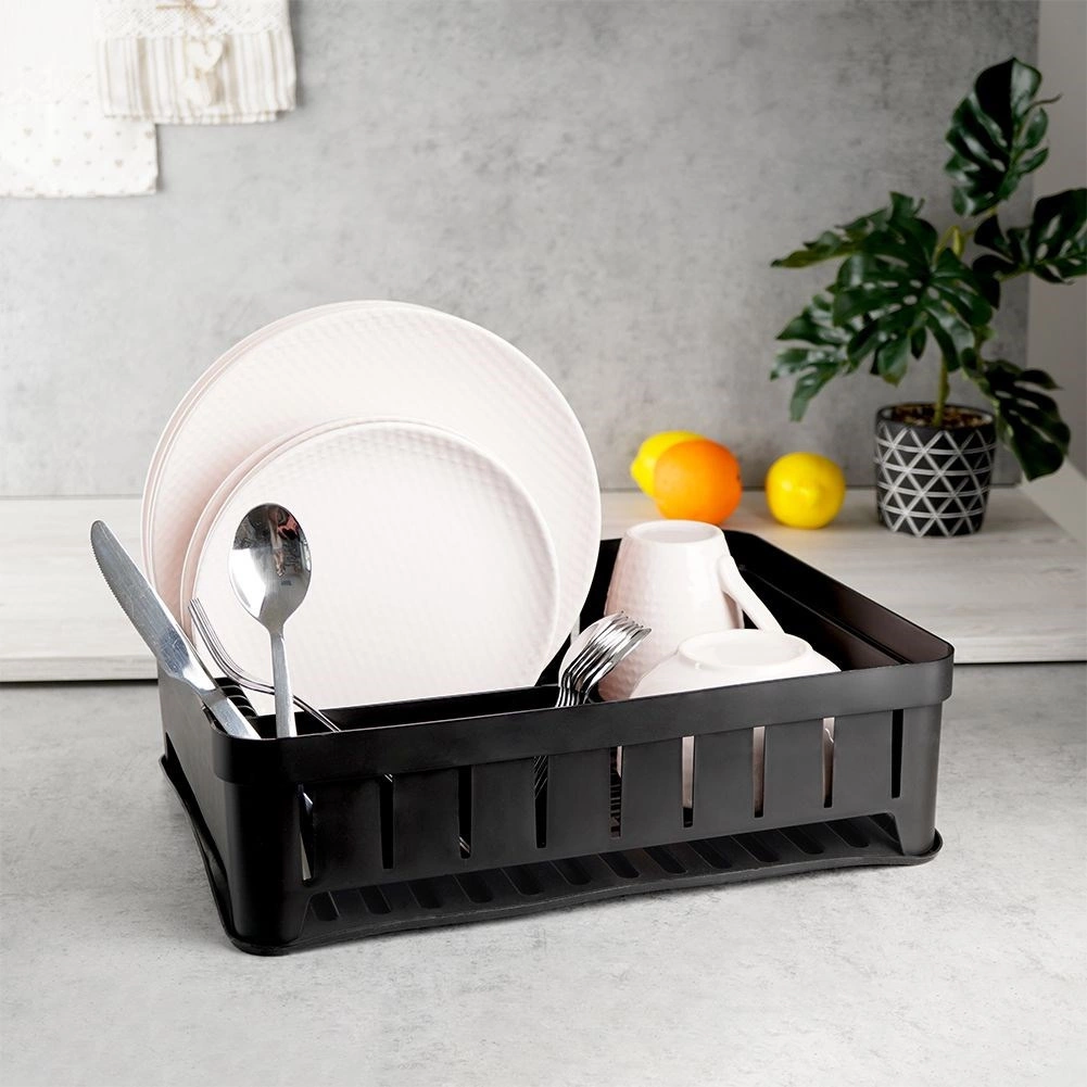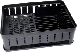 Elegante y compacto, este escurreplatos es un ayudante imprescindible en cualquier cocina. Su diseño minimalista y el acabado negro universal encajan a la perfección en interiores clásicos, modernos e industriales. La fabricación en plástico de calidad garantiza resistencia y larga vida útil, mientras que la bandeja de goma extraíble recoge el agua que gotea y mantiene la superficie de trabajo seca.
