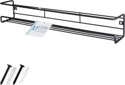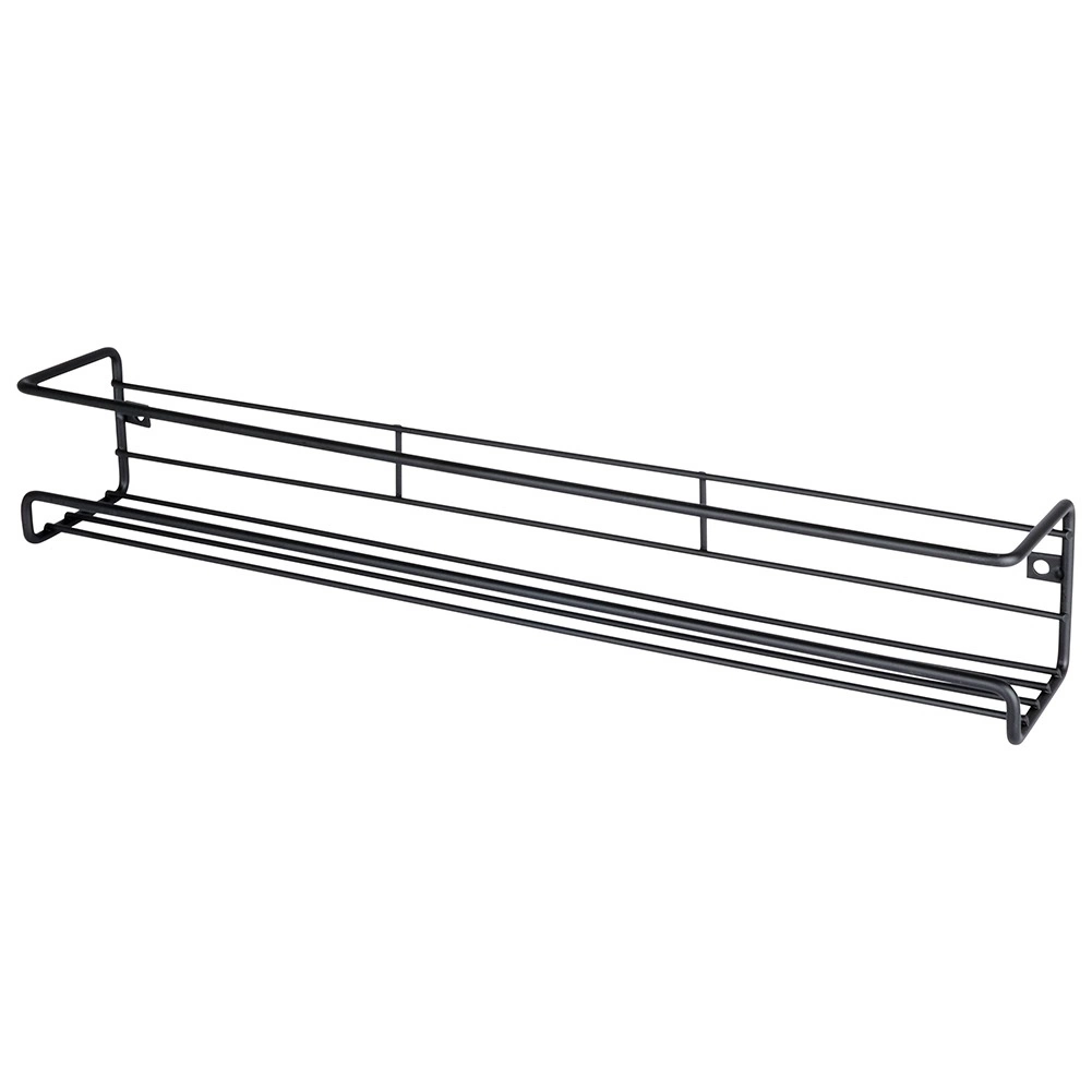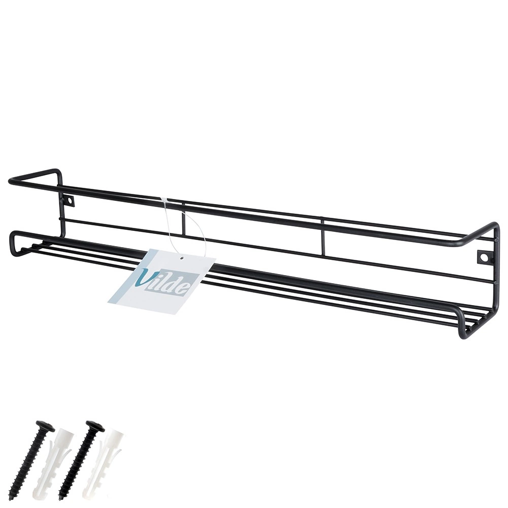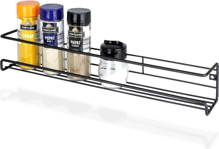 Práctico especiero metálico de pared en elegante color negro que ahorra espacio en la encimera y mantiene tus especias y pequeños objetos ordenados en un solo lugar. Gracias a sus dimensiones compactas de 40 × 6,5 × 6,5 cm encaja en cualquier cocina, baño o recibidor. Construcción metálica resistente, montaje sencillo y uso universal en un estilo loft moderno.