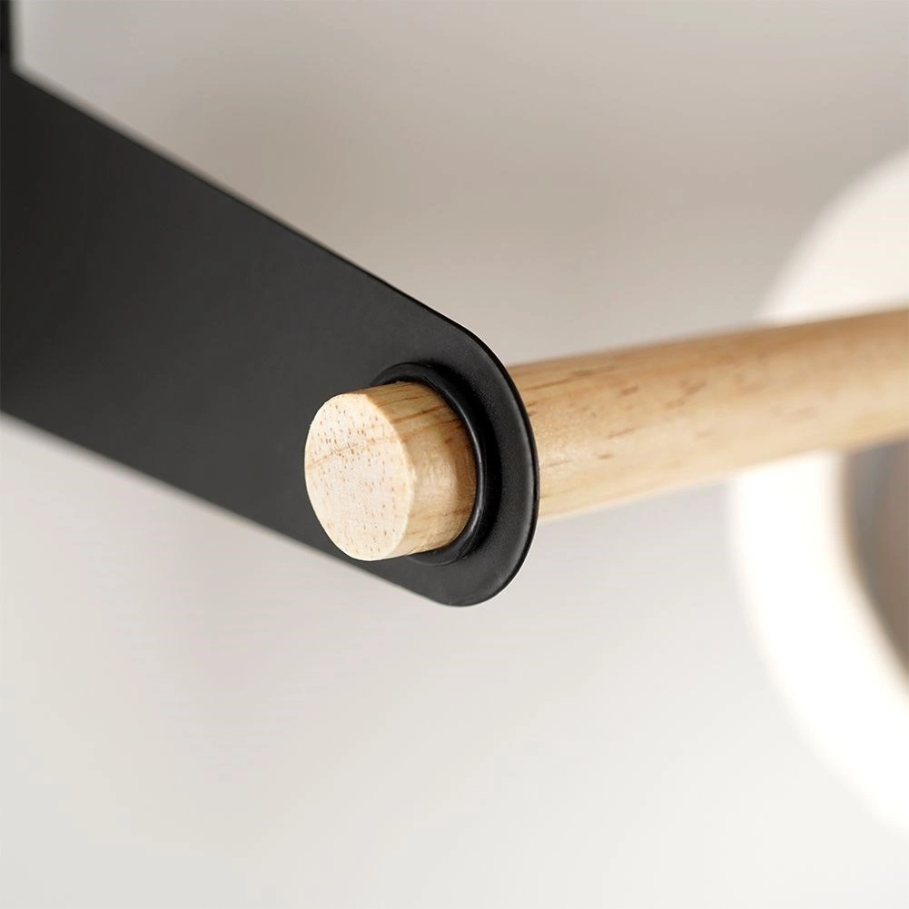El metal negro con recubrimiento en polvo es estable, resistente a la corrosión y fácil de mantener. El bambú aporta un acento cálido.
