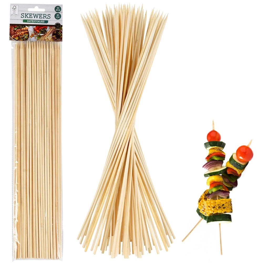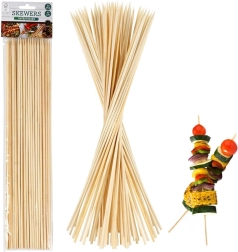 Estas brochetas de bambú largas son ideales para preparar shashliks, kebabs y brochetas mixtas en la parrilla o en el horno. Gracias a su longitud de 40 cm, admiten más ingredientes y permiten una cocción uniforme. El bambú natural es liso, resistente y seguro para el contacto con alimentos.