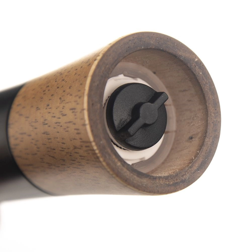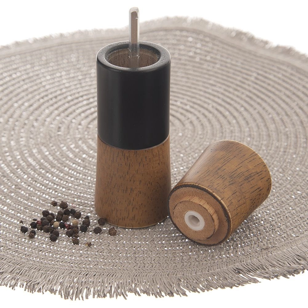 Elegante molinillo manual para pimienta, sal y otras especias de 15,5 cm de altura que combina madera natural y detalles en negro. Cuenta con mecanismo de molienda cerámico, ajuste continuo de la molienda y forma ergonómica para un uso cómodo. Las especias recién molidas aportan a los platos aroma y sabor intensos, y el molinillo se convierte además en un complemento elegante para tu cocina.