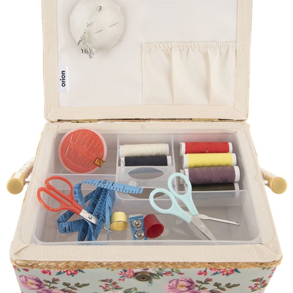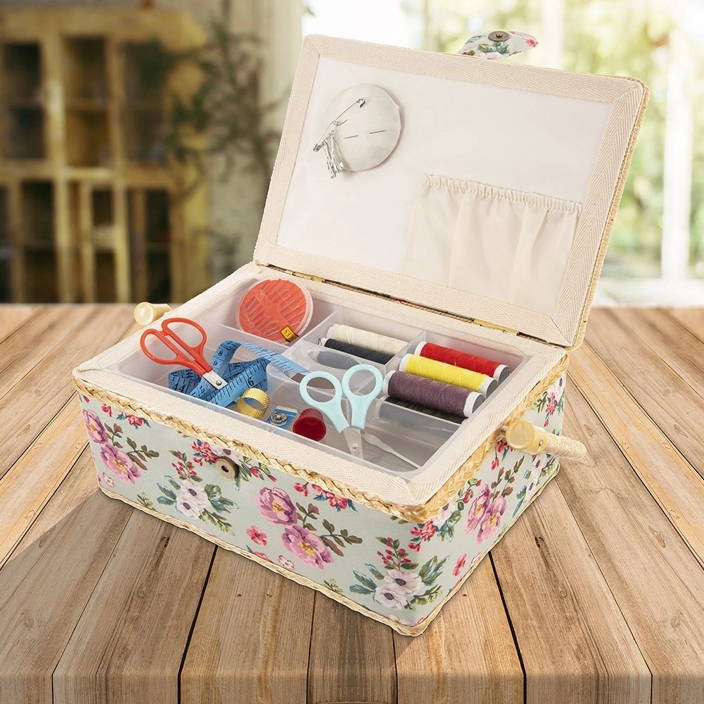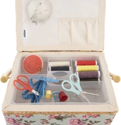 Este costurero con estilo es la solución ideal para quien desea tener los útiles de costura siempre a mano y perfectamente ordenados. Gracias al motivo floral y a su fabricación robusta, resulta decorativo y a la vez muy funcional. También es adecuado como organizador de bisutería y de pequeños materiales creativos.