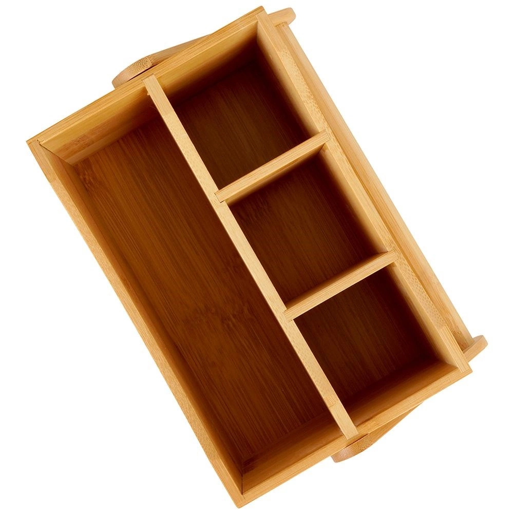 Tres compartimentos pequeños y uno más grande mantienen todo claramente separado: desde tenedores y cucharas hasta servilletas y condimentos.
