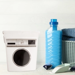 - Detergente en polvo, cápsulas de lavado, pinzas para la ropa