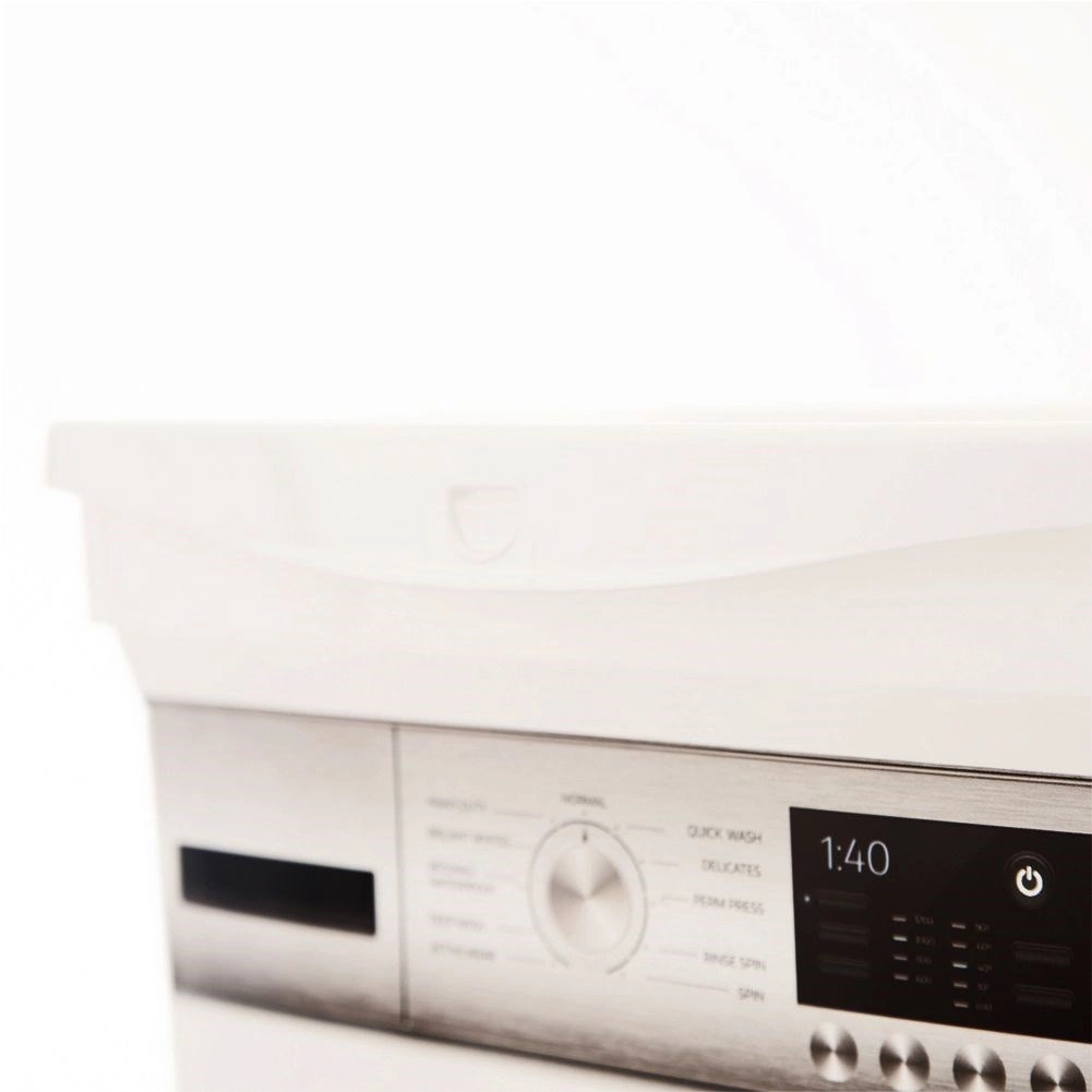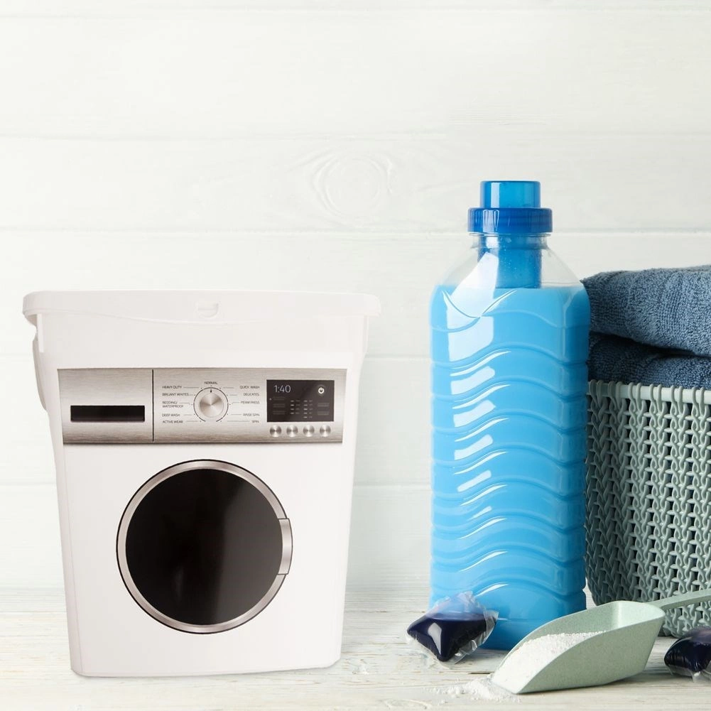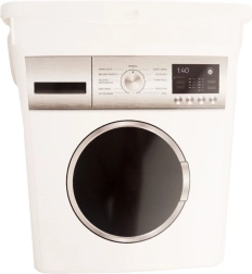 Mantén el orden en la lavandería y el baño. El contenedor con estampado de lavadora ofrece suficiente espacio para los productos de lavado y, gracias a su tapa con cierre, ayuda a preservar su frescura y fragancia. Su resistente fabricación en plástico de alta calidad en color blanco es fácil de limpiar y encaja perfectamente en cualquier interior.