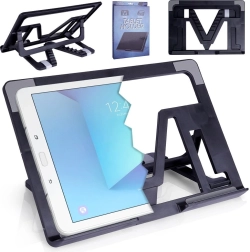 Mantén tu tablet exactamente en la posición que necesitas. Este soporte negro, compacto y plegable ofrece 6 posiciones ajustables (aprox. 9,5–14 cm), para encontrar fácilmente el ángulo ideal al cocinar con recetas, en reuniones online o para ver películas sin tenerlo en las manos.