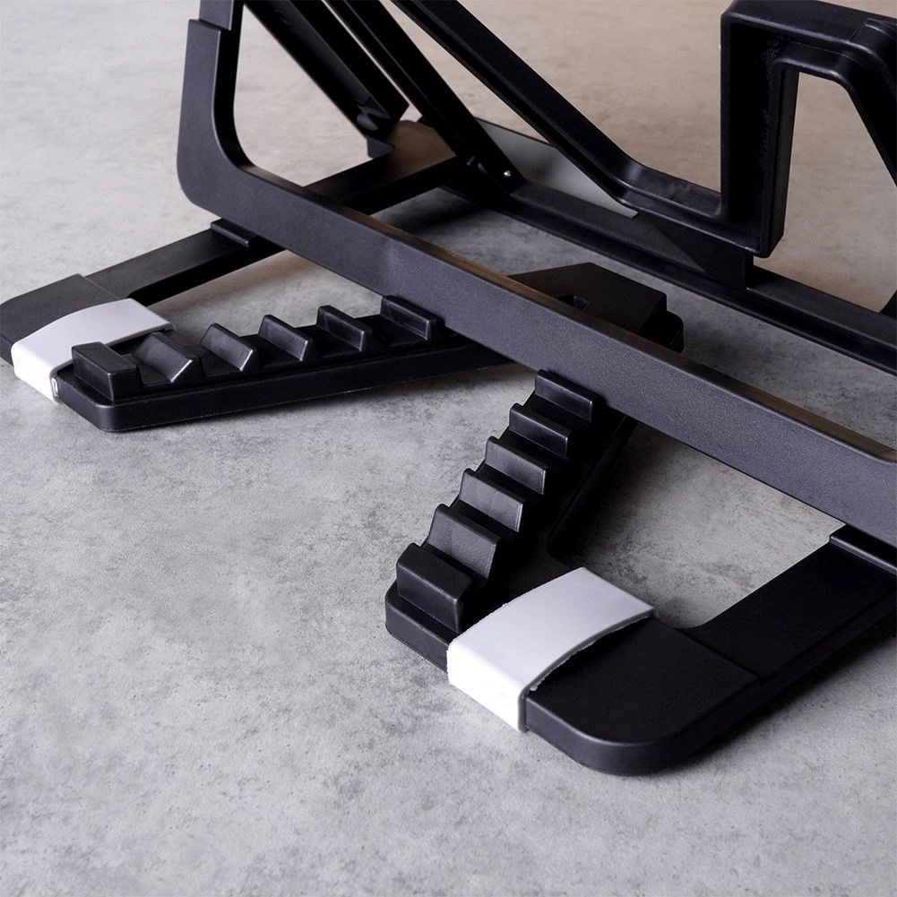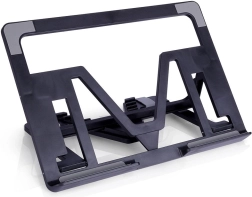 El soporte está fabricado en plástico de alta calidad y duradero con piezas sólidas de ABS que garantizan la estabilidad. Las almohadillas antideslizantes protegen el dispositivo y evitan que se desplace sobre la mesa. Tras su uso, simplemente pliégalo en plano: perfecto para transportar y almacenar.