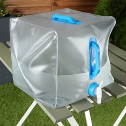 Práctico depósito de agua plegable de 20 l con grifo integrado y dos asas para un transporte sencillo. Ideal para acampadas, excursiones, la playa y el jardín. Gracias a su material flexible, se pliega fácilmente tras vaciarlo y ocupa un espacio mínimo. Diseño resistente, dimensiones compactas y dosificación cómoda del agua hacen de este bidón un ayudante fiable para viajes y para el hogar.