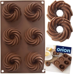 Práctico molde de silicona para hornear con capacidad para 6 piezas que te permite crear fácilmente mini bundts de 7 cm de diámetro. Gracias al material flexible, desmoldar los pasteles es sencillo y sin que se peguen. El molde es antiadherente, resistente a temperaturas de -40 °C a +220 °C y apto para horno, microondas y congelador. También se puede lavar en lavavajillas, por lo que su mantenimiento es muy sencillo.