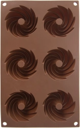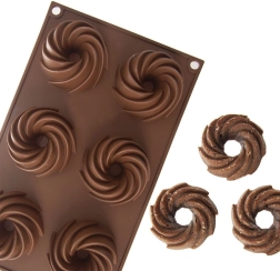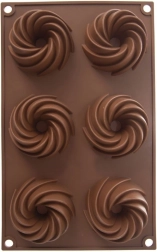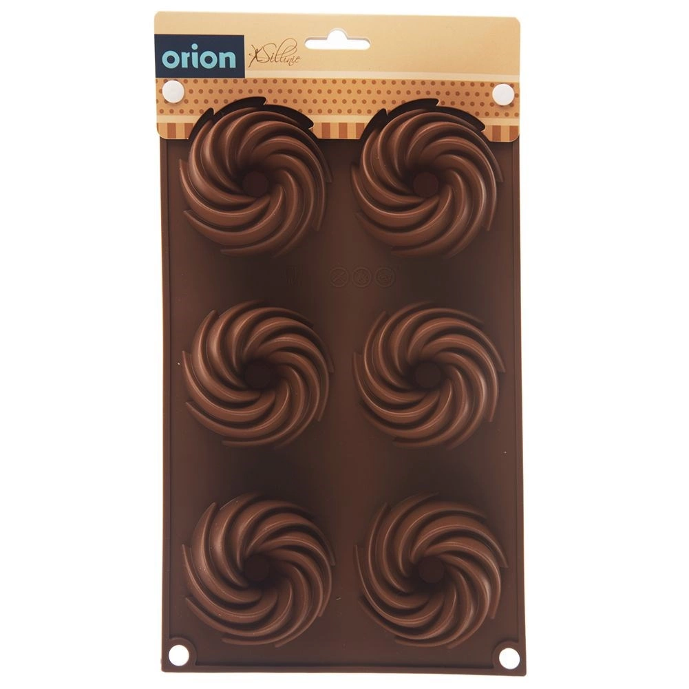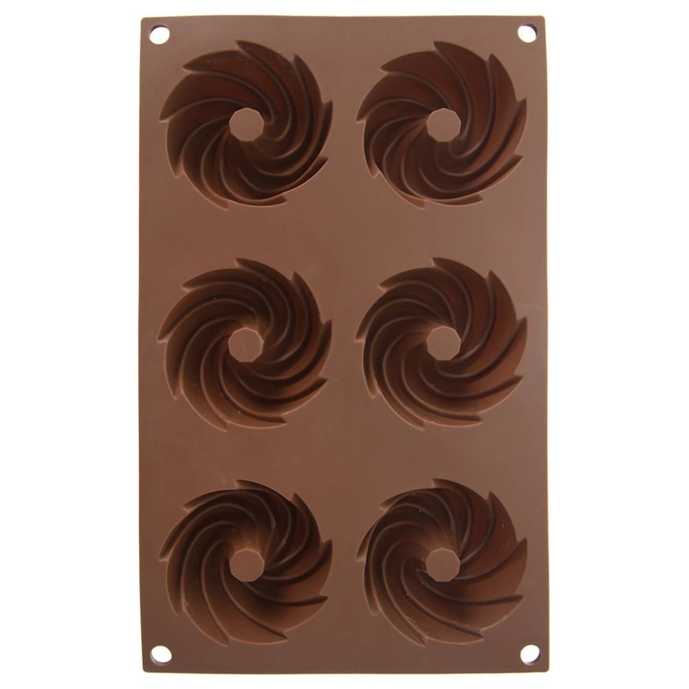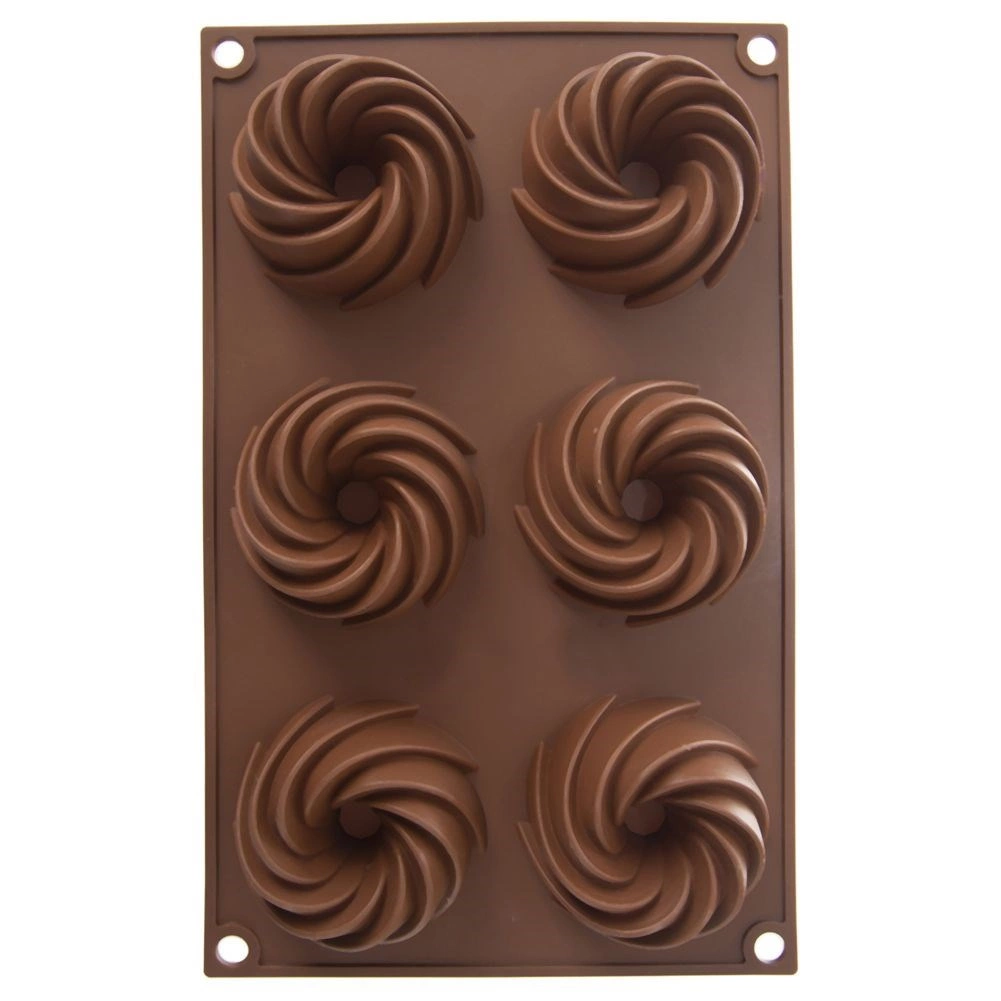 Distribución práctica de 6 cavidades con forma espiral decorativa para un horneado uniforme y un aspecto atractivo de los postres.