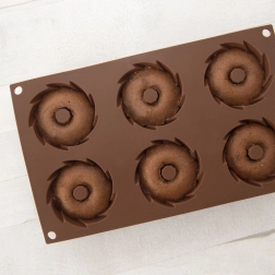 Este molde de silicona marrón para mini bundts es ideal para el horneado diario y postres festivos. Su construcción ligera y flexible garantiza que la masa no se adhiera y que los pastelitos se desmolden fácilmente sin necesidad de engrasar ni enharinar. Una gran elección para un horneado casero rápido con resultado profesional.