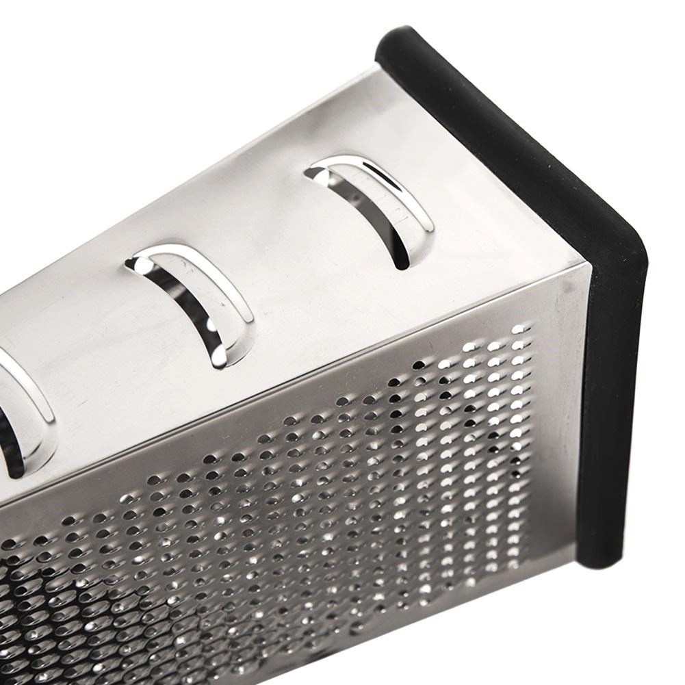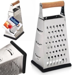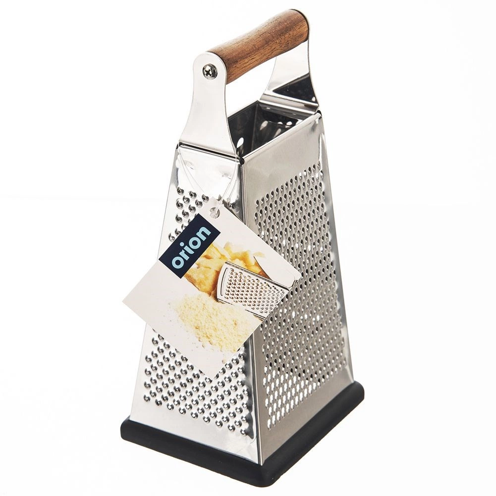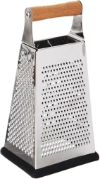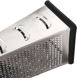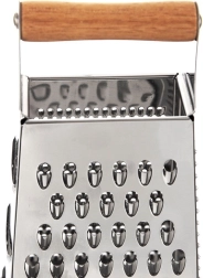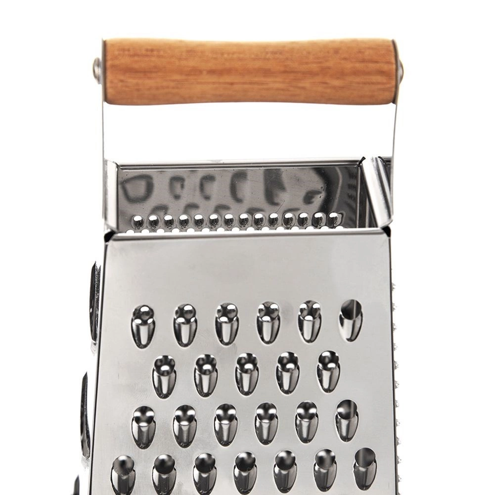 Descubra el rallador de cocina universal que facilita la preparación de verduras, frutas, quesos y especias. El cuerpo de acero inoxidable garantiza una larga durabilidad y cuchillas afiladas, mientras que el cómodo mango de madera de acacia y la base de goma antideslizante aseguran un agarre firme y estabilidad durante el uso.