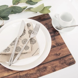 El mantel individual con diseño realista de madera es un complemento práctico y decorativo para la cocina o el comedor. Gracias a sus dimensiones de 43 × 30 cm, se ajusta perfectamente bajo el plato, protege la superficie de la mesa de manchas y arañazos y realza tu vajilla.
