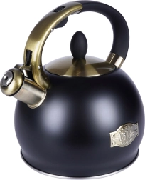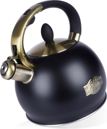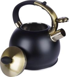 Esta tetera con estilo está fabricada en acero inoxidable de alta calidad, resistente y neutro al sabor. Gracias a la combinación de negro mate y acentos dorados, se convierte en un adorno de diseño para tu cocina, ya sea moderna o clásica. La práctica tapa extraíble facilita el llenado de agua y la limpieza.