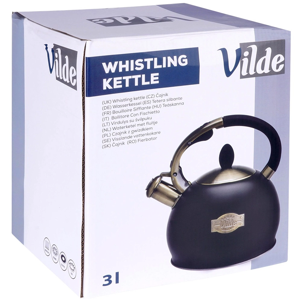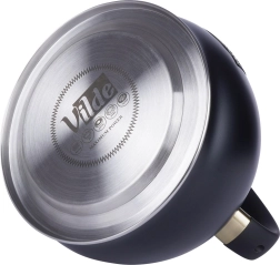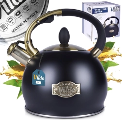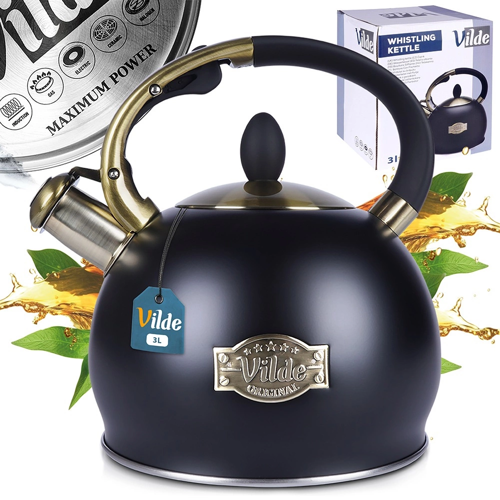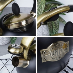 El negro mate en combinación con detalles en latón y el emblema Vilde aporta a la tetera un aspecto atemporal que encaja a la perfección en cocinas modernas y clásicas.