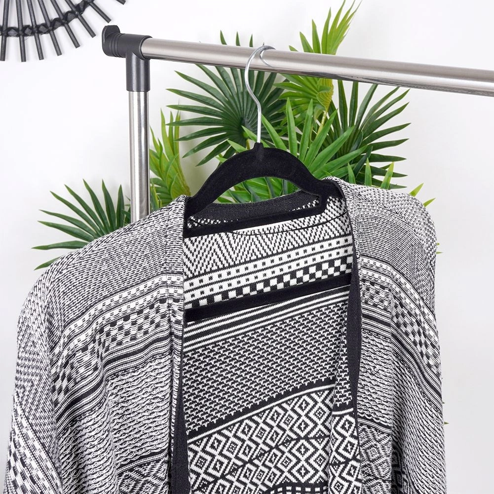 Las perchas cuentan con ranuras en los hombros y una barra inferior, por lo que podrás colgar sin problemas camisetas, americanas, vestidos de tirantes finos, faldas, pantalones e incluso pañuelos. El terciopelo es suave con los tejidos y ayuda a evitar deslizamientos, arrugas y marcas de presión.