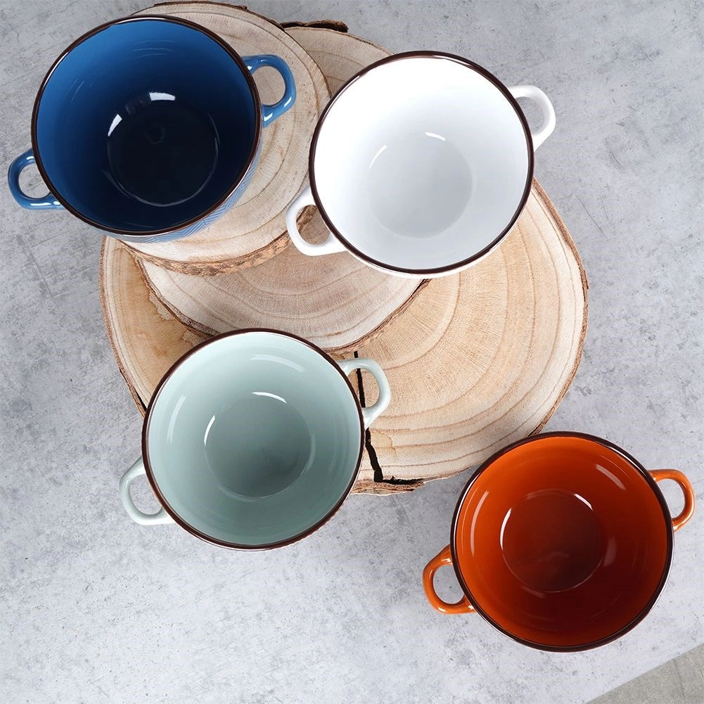 El juego de cuatro cuencos con prácticas asas facilita servir sopas calientes, guisos y tentempiés. Cada cuenco tiene una capacidad de 620 ml y unas dimensiones de 18 × 14 × 8 cm, por lo que ofrece espacio suficiente para raciones generosas. La cerámica de alta calidad con esmalte brillante es duradera y fácil de mantener.