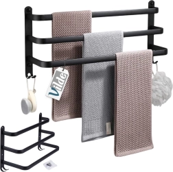 Tres barras horizontales permiten colgar varias toallas a la vez para que se sequen más rápido y se mantengan frescas.
