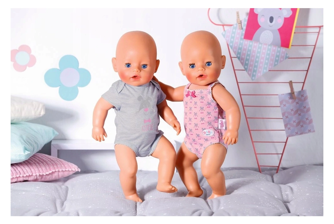 El body con estilo para muñecas BABY BORN en tamaño de 43 cm hará feliz a cualquier pequeña mamá. Está diseñado para un fácil vestido y uso cómodo, fomenta el juego creativo, el desarrollo de la imaginación y complementa perfectamente el armario de la muñeca. Apto para niños a partir de 3 años y compatible con muñecas de 36–43 cm.