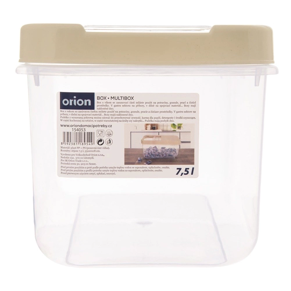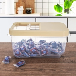 Este contenedor universal de 7,5 l ayuda a mantener el orden en la cocina, la despensa y el baño. El cuerpo transparente permite controlar al instante el nivel de existencias sin abrir, y la tapa beige con cierre deslizante garantiza una dosificación cómoda y un acceso rápido.