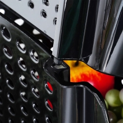 Las paredes perforadas garantizan el flujo de aire, gracias al cual las frutas y verduras se mantienen frescas por más tiempo y bien visibles.