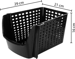 Gracias a su color negro neutro, combina fácilmente con el equipamiento del hogar. Es perfecta no solo para alimentos, sino también para productos de limpieza, pequeños artículos del hogar o material de oficina. Si adquieres varias unidades, puedes apilarlas para ahorrar espacio.