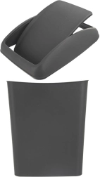 Cubo práctico para pequeños residuos con compuerta abatible en forma de balancín, ideal para espacios reducidos. Es ligero, estable y duradero, por lo que puede colocarse en el suelo, sobre la encimera o guardarse en un armario. Su diseño limpio y atemporal en gris oscuro combina con distintos estilos de interior.