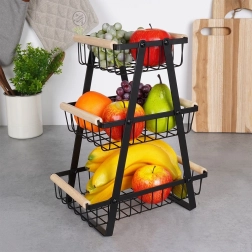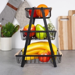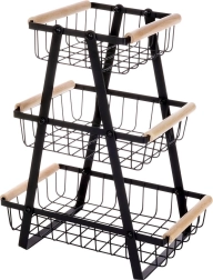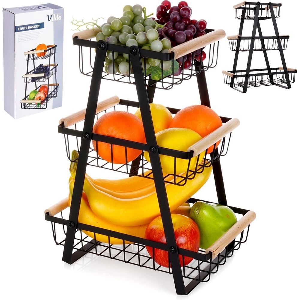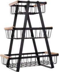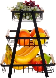 El marco en A vertical con tres cestas aprovecha al máximo el espacio en la encimera y mantiene frutas y verduras ordenadas y a mano.