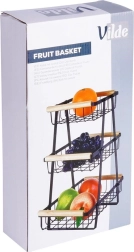 Este estante de tres niveles para frutas y verduras ofrece un almacenamiento vertical inteligente, ahorrando espacio en la encimera y en la despensa. Las cestas abiertas mejoran el flujo de aire, por lo que los alimentos se mantienen frescos por más tiempo y siempre a la vista. El robusto metal en negro mate se complementa con agradables asas de madera para una manipulación cómoda.