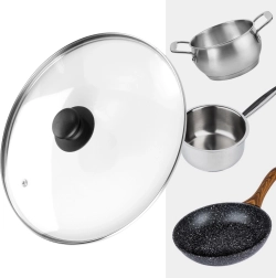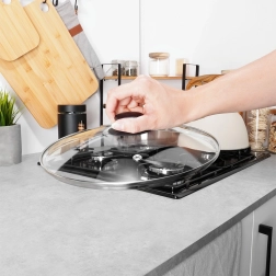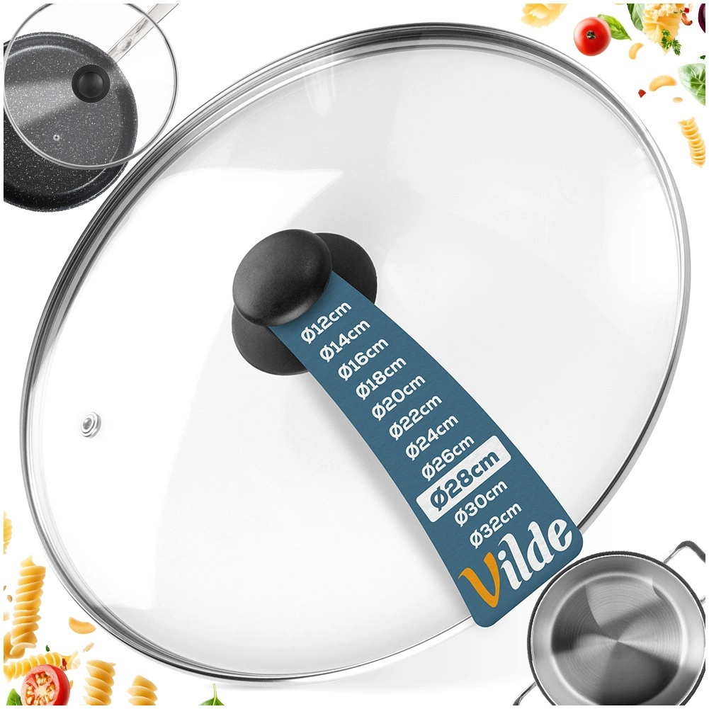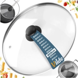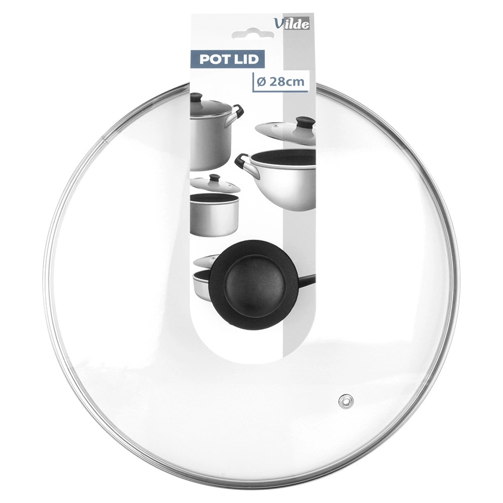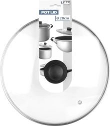 La práctica tapa de vidrio transparente y resistente al calor es ideal para ollas, sartenes y cacerolas de 28 cm de diámetro. El borde de acero inoxidable duradero prolonga la vida útil, mientras que el asa ergonómica de material resistente facilita la manipulación. Gracias a su transparencia, tendrá control total de la cocción sin pérdidas de calor innecesarias.
