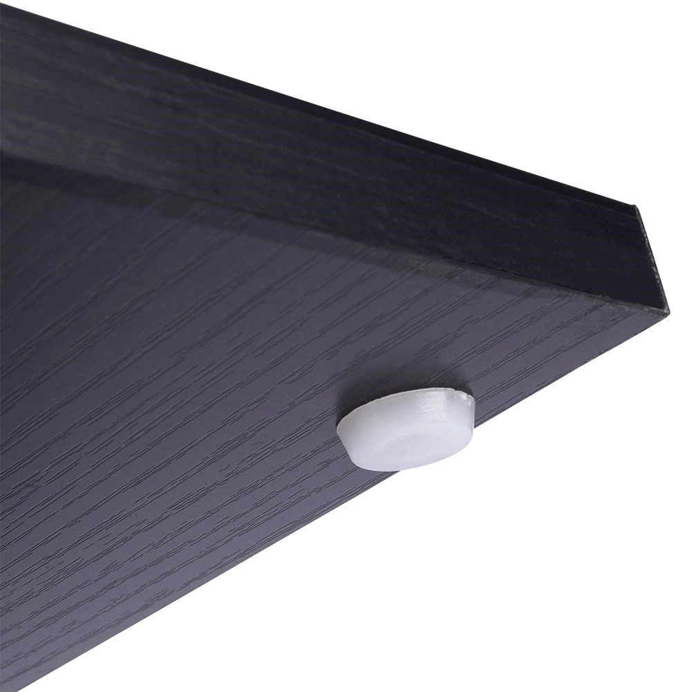 El marco metálico negro y los estantes de MDF con textura de madera ofrecen solidez, larga vida útil y fácil limpieza.