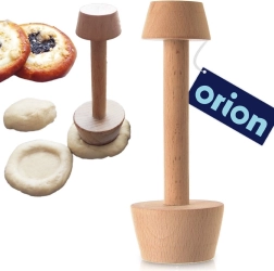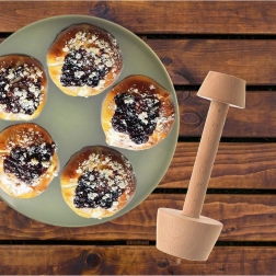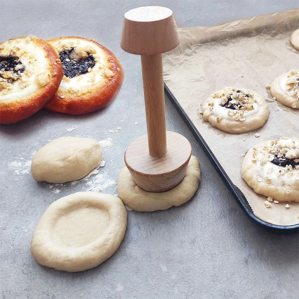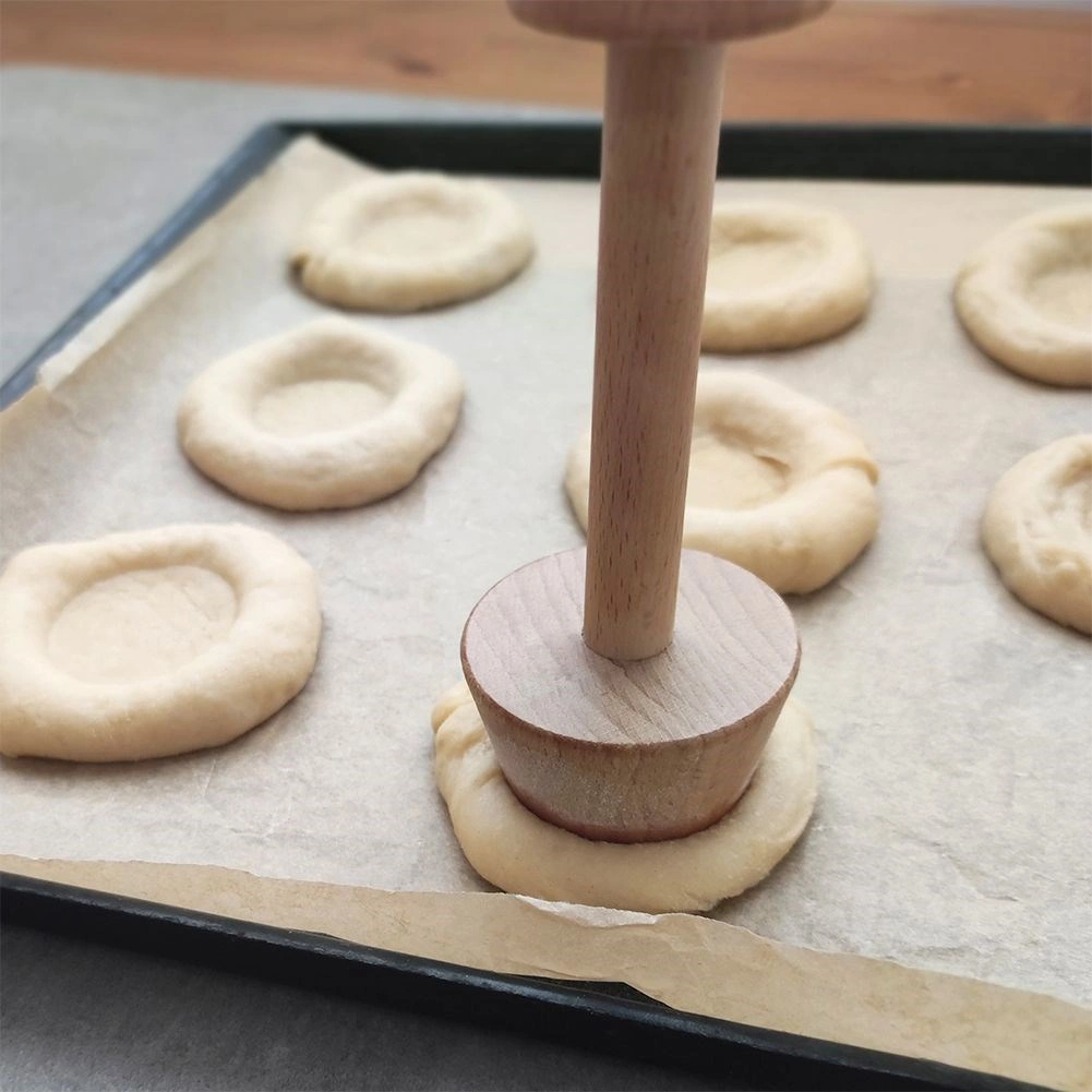 Este compactador de doble cara facilita la preparación de tartaletas, tartas, galletas e incluso bollería levada. La cabeza pequeña (4 cm) es ideal para mini tartaletas y cestitas; la mayor (5,5 cm) para dar forma a la masa en moldes más grandes y para crear cavidades uniformes para rellenos como crema, mermelada, requesón o fruta. Gracias a la superficie naturalmente lisa de la madera de haya, la masa no se pega y el moldeado es rápido y preciso.