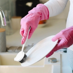 ¿Busca un cepillo para vajilla higiénico y duradero que pueda con la suciedad incrustada? Este cepillo de silicona con mango largo limpia eficazmente platos, ollas, sartenes y utensilios de cocina, y es igual de útil en el baño para juntas o la bañera. Las cerdas de silicona densas y flexibles se mantienen fácilmente, no absorben olores y se secan rápido.