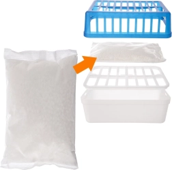 Basta con colocar la bolsa con gránulos en la cesta del deshumidificador y poner la tapa. Cuando se agote el recambio, simplemente vacíe el agua y añada una nueva bolsa.