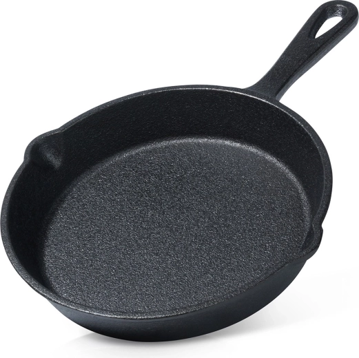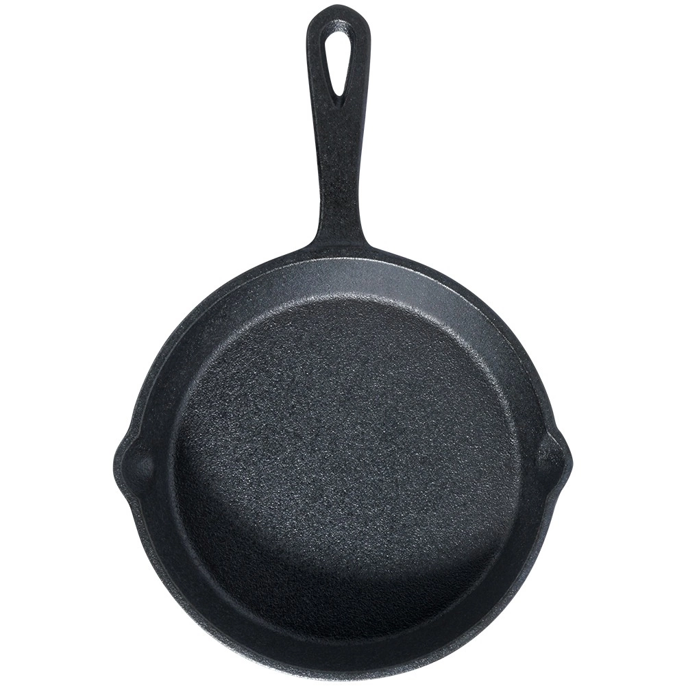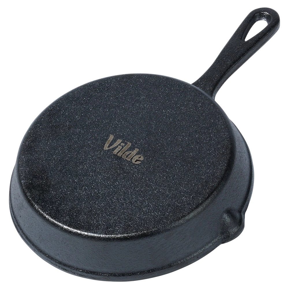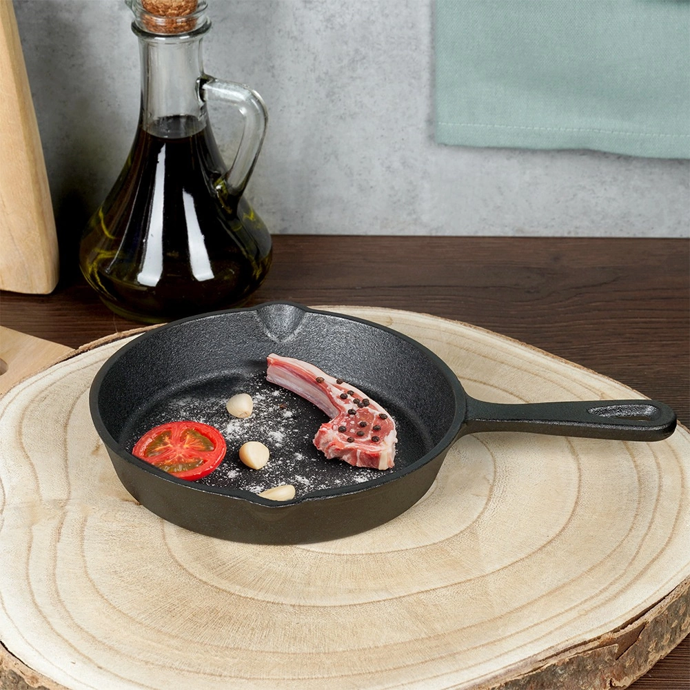 Sartén compacta de hierro fundido con un diámetro de 15 cm para cocinar a diario en casa, en la parrilla y en el horno. Ofrece distribución uniforme del calor, larga retención térmica y resistencia a altas temperaturas. Dos picos vertedores prácticos facilitan el servicio y el orificio en el mango permite colgarla. Apta para gas, electricidad, vitrocerámica, halógeno e inducción.
