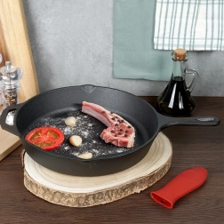 Compatible con todo tipo de cocinas: gas, eléctrica, vitrocerámica, halógena e inducción, y también apta para horno, fuego directo o parrilla. Para una larga vida útil, recomendamos el aceitado regular y el lavado a mano (no apta para lavavajillas).