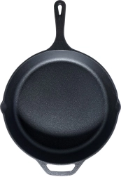 La robusta sartén de hierro fundido es ideal para freír, saltear, estofar y asar. El hierro fundido macizo se calienta uniformemente y retiene muy bien el calor, por lo que los platos se mantienen calientes y jugosos por más tiempo. Gracias a su construcción resistente, la sartén es adecuada para el uso diario en casa, en la casa de campo o en acampadas.