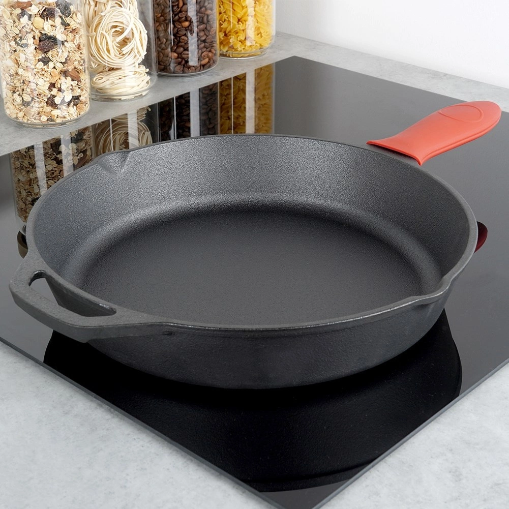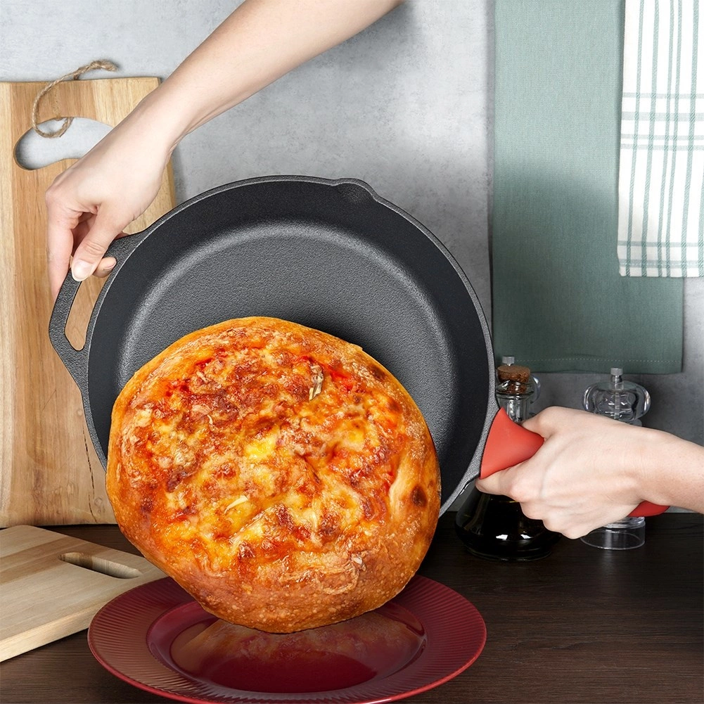 Incluye una funda de silicona roja para el mango principal que aumenta la seguridad del agarre y protege contra quemaduras durante la manipulación.