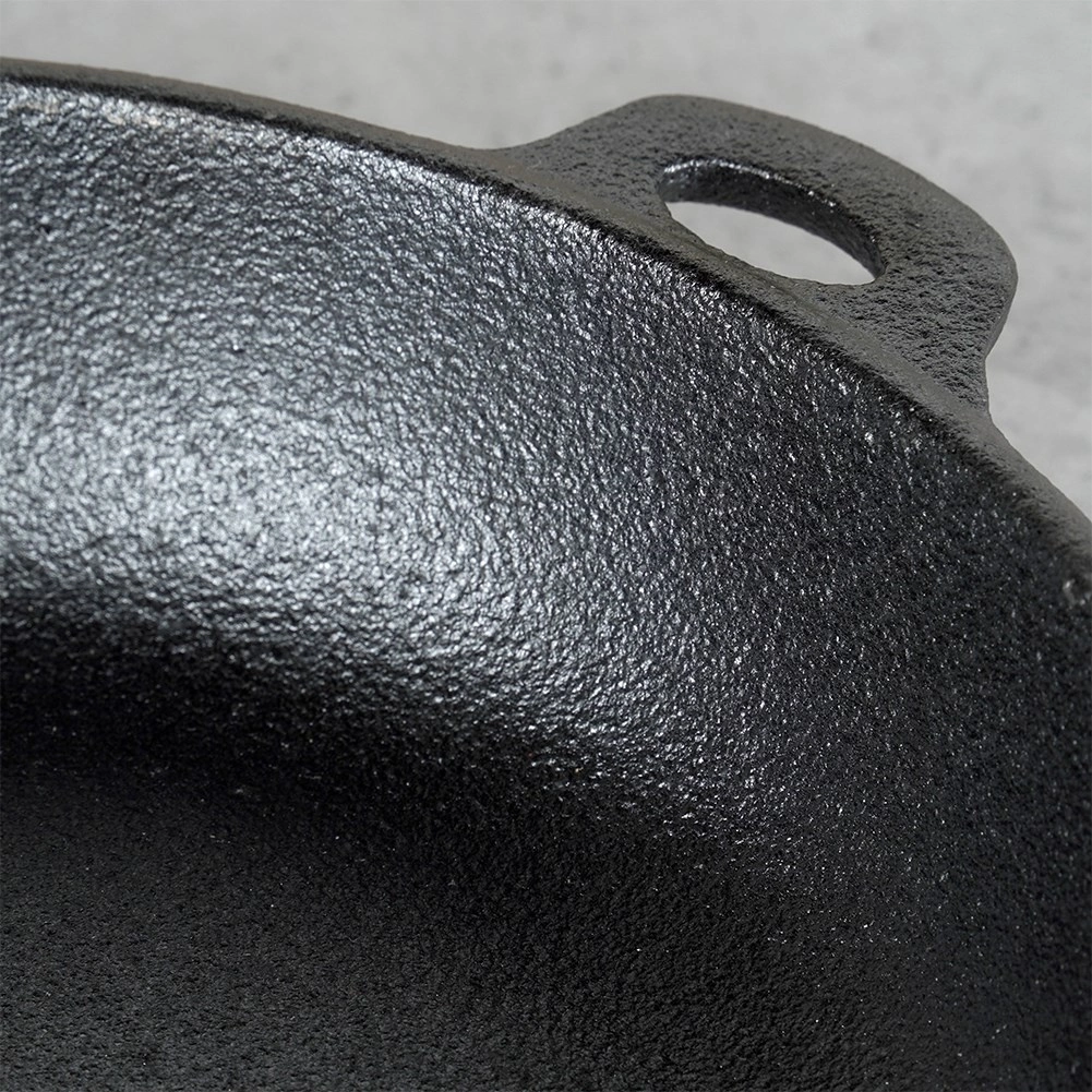 La sartén es versátil: funciona con gas, electricidad, vitrocerámica, halógeno e inducción, así como en la parrilla o sobre fuego abierto. Dispone de un mango de madera ergonómico largo y un asa auxiliar con orificio para colgar. Su construcción sin recubrimientos antiadherentes es naturalmente resistente: basta con engrasar/curar regularmente.