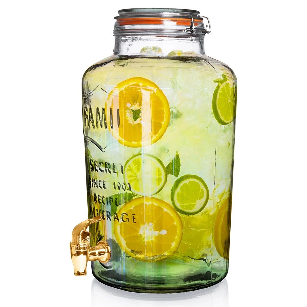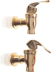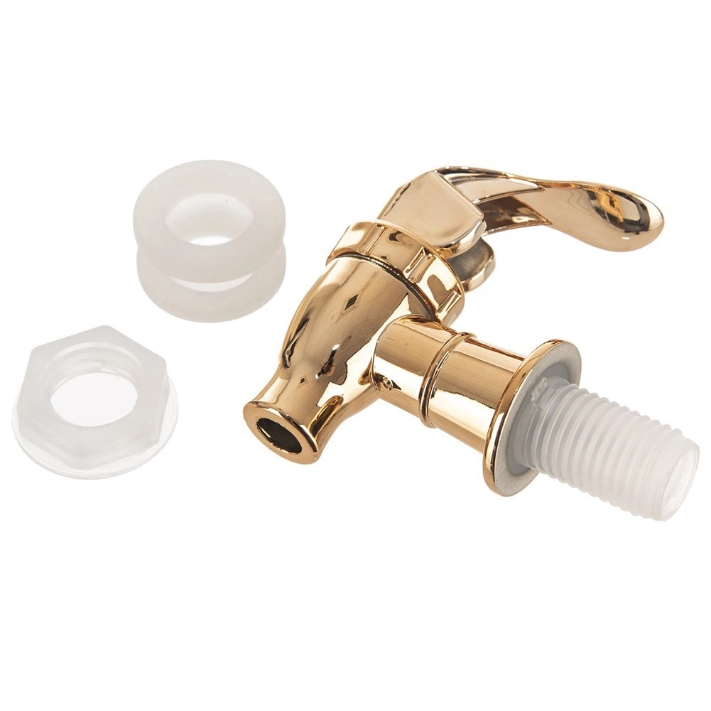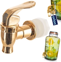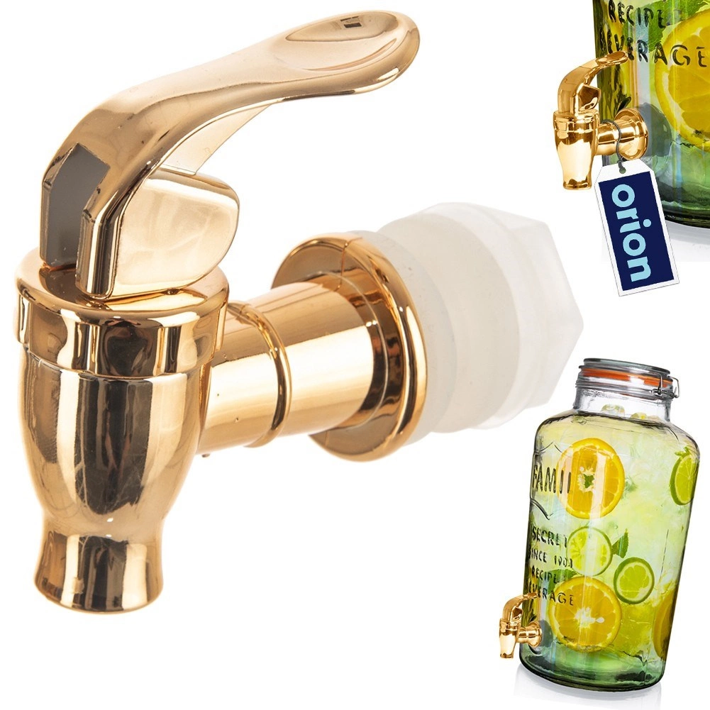 El tamaño y la rosca universales garantizan compatibilidad con la mayoría de recipientes de vidrio para limonadas, agua o té helado casero. El acabado metálico dorado brillante aporta un aspecto prémium a tu mesa y ofrece manejo cómodo mediante palanca para un vertido fluido.