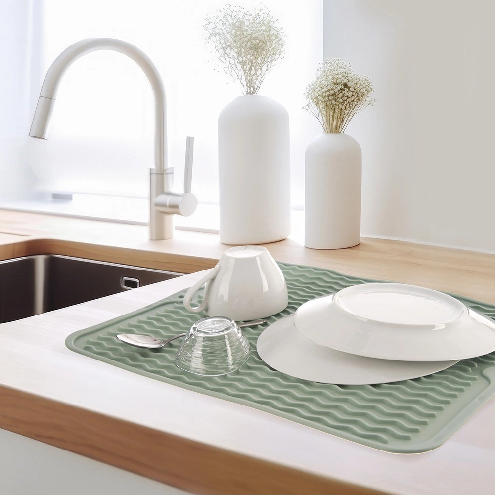 La silicona suave protege la superficie de trabajo y evita que la vajilla se deslice. La alfombrilla es resistente, fácil de lavar y apta para lavavajillas.