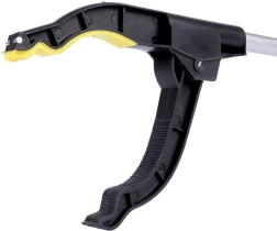 La combinación de cuerpo de aluminio ligero y piezas plásticas resistentes garantiza bajo peso y larga vida útil. Las mandíbulas texturizadas y de goma sujetan de forma fiable objetos de hasta aproximadamente 8 cm de ancho, mientras que la emp uñadura tipo pistola con gatillo sensible ofrece seguridad y control del agarre.