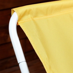 El tejido de poliéster resistente en tonos amarillos es agradable al tacto y permite un descanso cómodo tanto en la playa como en el jardín.