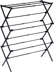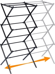 El tendedero cuenta con 10 varillas de secado de 37–68 cm (según la extensión), con una superficie total de secado de hasta 6,8 m. Cuatro patas estables mantienen la estructura firmemente en su sitio y el diseño en niveles permite secar más prendas, toallas e incluso ropa delicada ocupando el mínimo espacio.