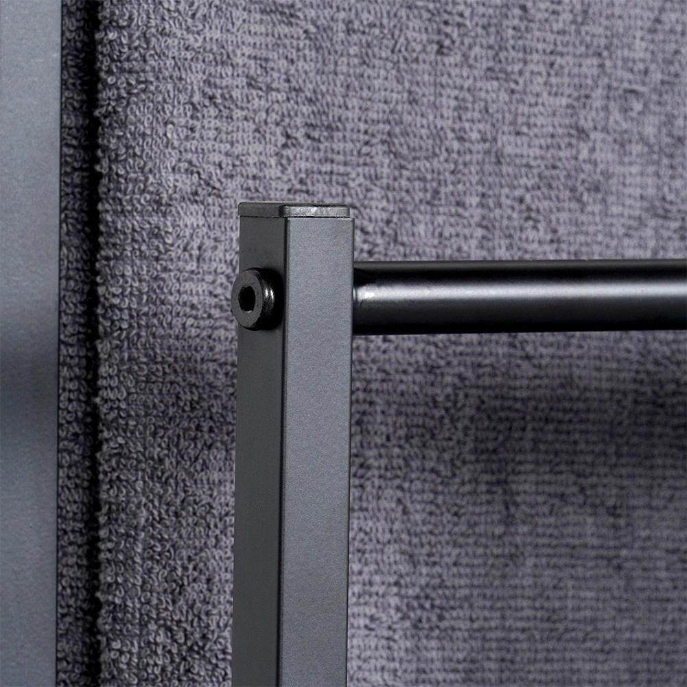 Los múltiples niveles permiten colgar varias toallas a la vez con mejor circulación del aire y organización clara.