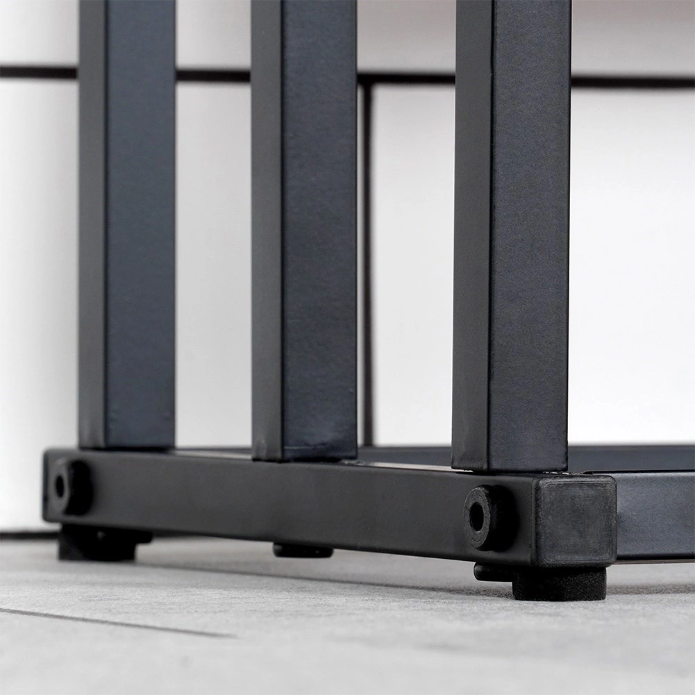 El cuerpo robusto de metal con recubrimiento en polvo ofrece gran estabilidad. Las patas antideslizantes y protectoras resguardan el suelo de arañazos y ayudan a nivelar irregularidades. Gracias a su construcción sencilla, el montaje es rápido y fácil; el paquete incluye los tornillos necesarios.
