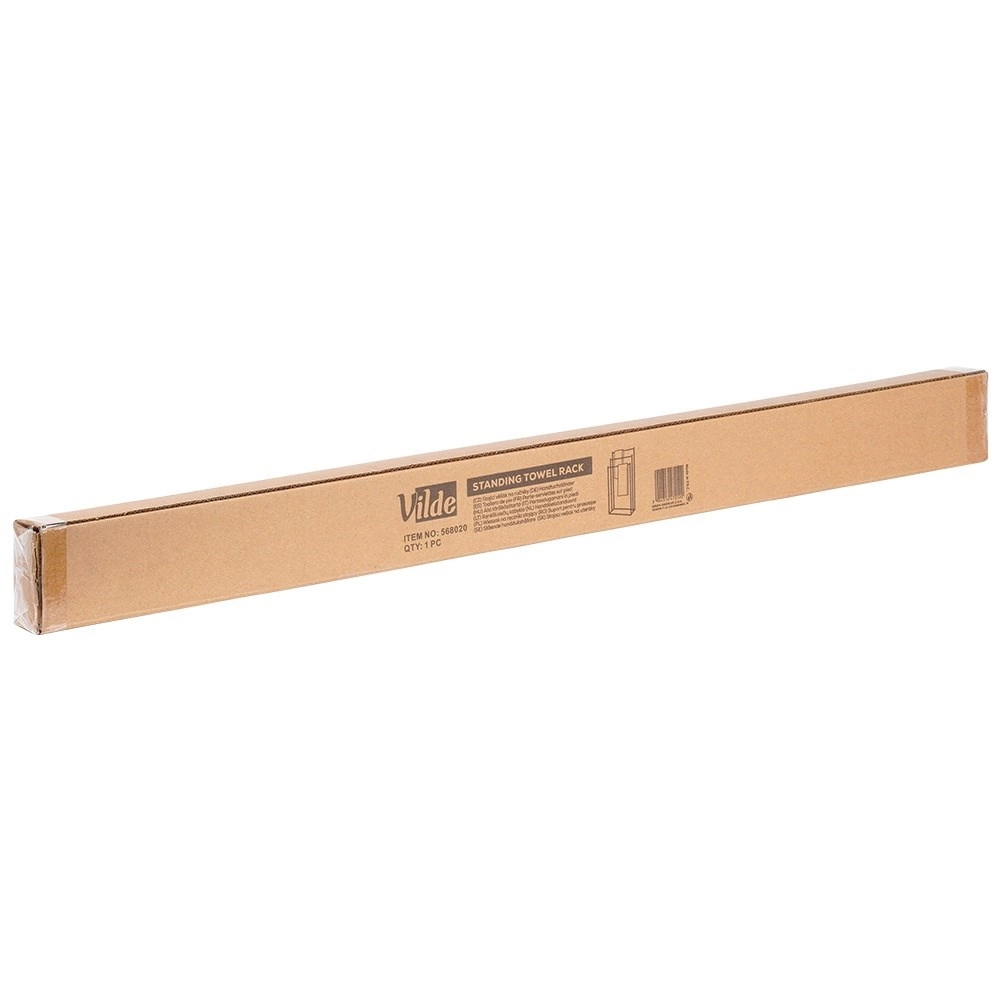 La base rectangular con patas ajustables/protección antiarañazos mantiene el toallero firmemente en su sitio y protege el suelo.