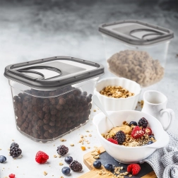 Pon orden en tu despensa y cocina. Este dispensador de la gama Grey es ideal para café, cereales, pasta, frutos secos, muesli o setas deshidratadas. Gracias a las paredes transparentes, ves fácilmente las existencias y la tapa dosificadora permite verter de forma cómoda y limpia sin retirar toda la tapa.